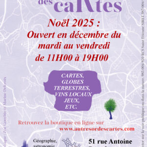 Reprise des permanences le mardi 2 décembre, à l’occasion des fêtes de fin d’année. Le 51 rue Antoine Durafour à Saint Étienne vous accueillera jusqu’au 24 décembre du : – mardi au vendredi, de 11h00 à 19h00. Vous y trouverez des cartes, des affiches, des globes terrestres, des puzzles, des vins locaux et des livres […] ...